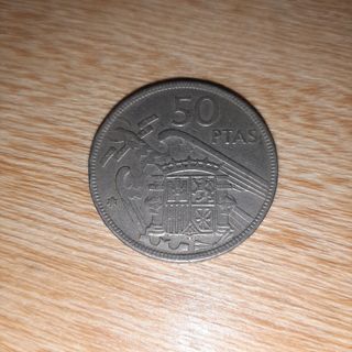 Moneda de 50 pesetas de España. - Diseño con escudo
