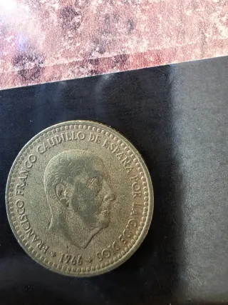 Moneda de 1 peseta de España del año 1966. - Anverso: Retrato de Francisco Franco Caudillo de España por la Gracia de Dios. - Reverso: Escudo de España. - Año: 1966. Escucho ofertas.
