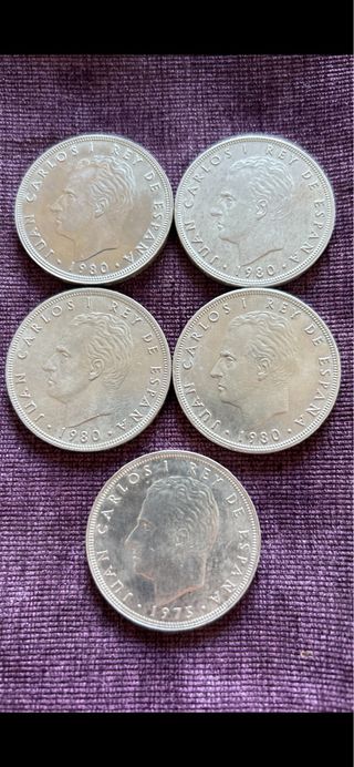 Conjunto de 5 monedas de 100 pesetas con la efigie de Juan Carlos I. - Monedas de colección. - Efigie de Juan Carlos I. - 4 monedas de 1980 mundial 1982 - 1 moneda de 1975 - se entregan en persona 607941245