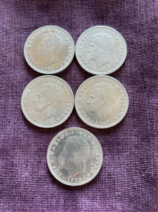 hola vendo moneda de 5 pesetas año 1957 y tiene en la estrellas 75 tengo dos unidades y luego tengo otra q tiene otra estrella numero 60 y es del año 1957 escucho ofertas