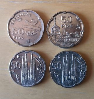 Lote 4 monedas 50 pesetas. Impolutas en perfecto estado de conservación. Tags: pesetas, moneda colección, numismatica, monedas antiguas, moneda conmemorativa, moneda plata, moneda rara, olimpiadas, juegos olímpicos, colección monedas, fnmt, moneda españa, moneda error.
