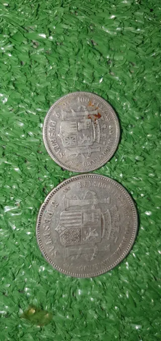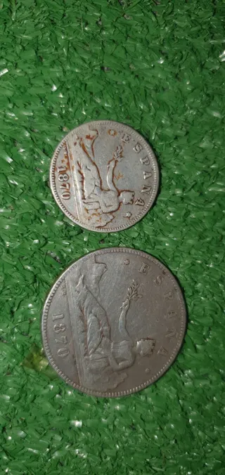 5 Pesetas 1870 500€ 2 pesetas 1880 200€