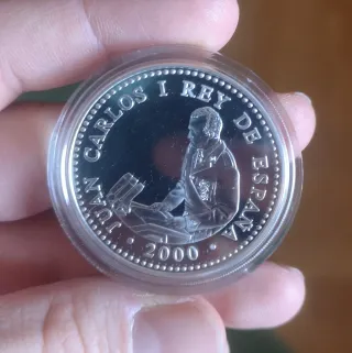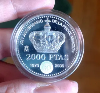 Moneda 2000 pesetas. - XXV Aniversario de la Proclamación como Rey de España Juan Carlos I (1975 - 2000) . - Diseño de corona y escudo. - Plata de ley 925 - Acabado PROOF - Se entrega junto con su estuche y certificado de autenticidad. PRECIO NO NEGOCIABLE ENTREGA EN MANO EN MADRID. Tags: plata, moneda colección, moneda rara, numismatica, pesetas, colección monedas, plata 925, plata pura, plata fina, moneda exclusiva, medalla, medallon, inversión.