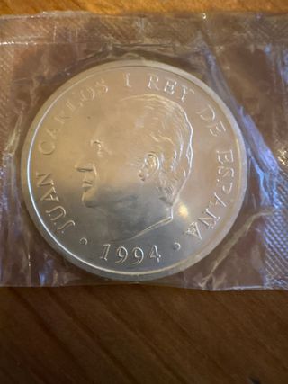 Moneda conmemorativa de 2000 pesetas del año 1994. - Fabricada en plata. - Presenta el busto de Juan Carlos I. - Grabado JUAN CARLOS I REY DE ESPAÑA.