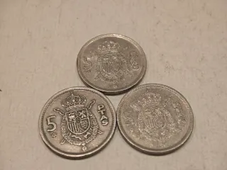 Lotemonedas de 5 pesetas de España.