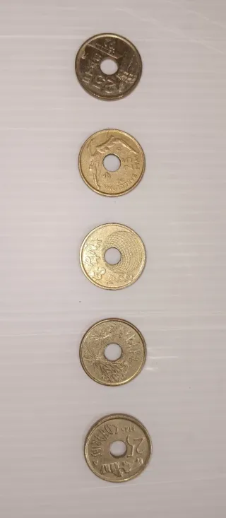 Lote 5 monedas con agujero de 25 pesetas