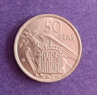 Moneda de 50 pesetas del año 1957 con la estrella 58. En el estado que se ve en las fotos. - Diseño con escudo. - Inscripción 50 PTAS.