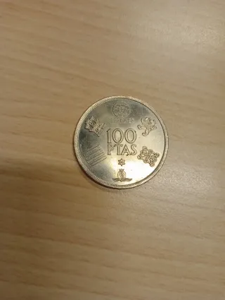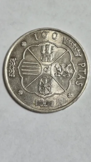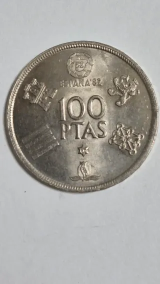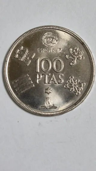 Moneda conmemorativa de 100 pesetas de España, año 1982. Pago por bizum al 606570041 - Diseño con escudos y símbolos. - Inscripción ESPAÑA 1982.