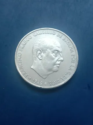 Moneda de plata de 100 pesetas de Franco del año 1966 con estrella 66. La que se ve en las fotos.