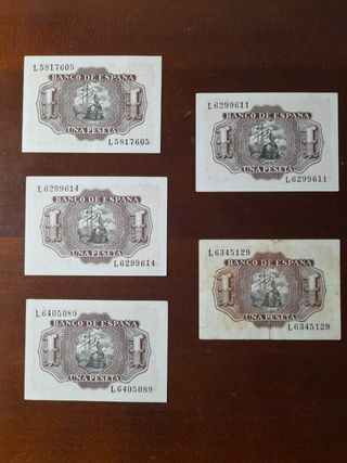 Lote de 5 billetes correlativos de 1 peseta 1953