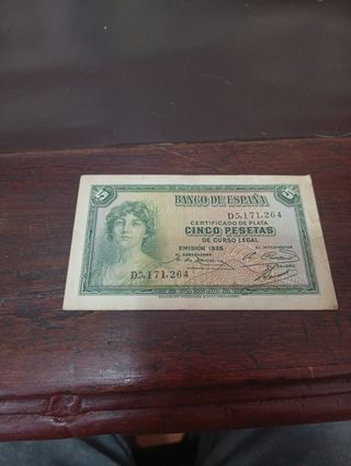 Billete de 5 pesetas del año 1954, como nuevo, sin dobleces ni arrugas. Para envíos por aplicacion importe mínimo acumulado de 30 €