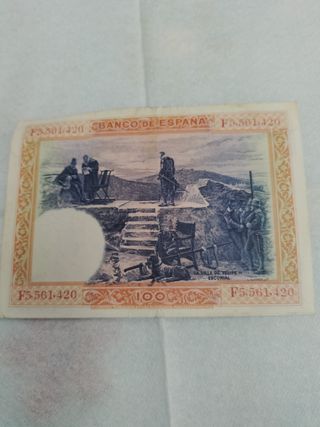 Billete cien pesetas del 1925. Medidas 13.5 cm por 10 cm