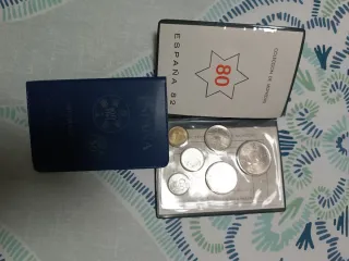 Más en mí perfil 1 por 12€ 2 por 20€ Colección de monedas de España del año 1980, conmemorativa del Mundial de Fútbol de 1982. - Incluye varias pesetas. - Presentado en una carpeta azul. - Diseño con estrella y el número 80.