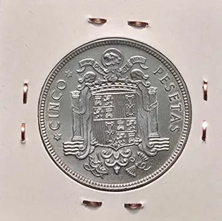 Moneda de 5 pesetas del año 1957. 🔴 (tengo varias) 🔴 - Diseño con el escudo de España. - Inscripción 5 PTAS y 1957.