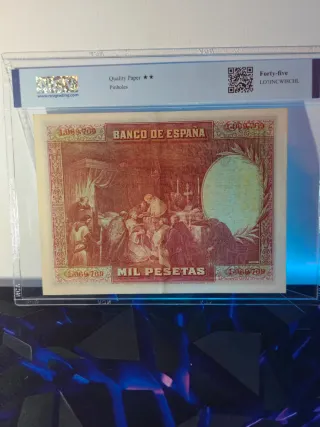 Billete Español, Certificado por NCV, plástico totalmente nuevo, certificados todos por mi, sin rayadas. La descripción del Billete y su calificación aparece en la parte superior de cada billete. ( Primera foto,Certificación ) Terminación del número de serie, 69. Toda la colección de billetes certificados tienen la misma terminación, tanto numeraciones sin serie, con serie, y series especiales. Cualquier duda o consulta, no lo dude! Se envían más fotos si se precisan, se hacen lotes para un mismo envío. - Denominación: 1000 Pesetas. - Fecha: 15 de agosto de 1928. - Lugar de emisión: Madrid. - Serie: 1069769. - Pick: #78a. - Marca