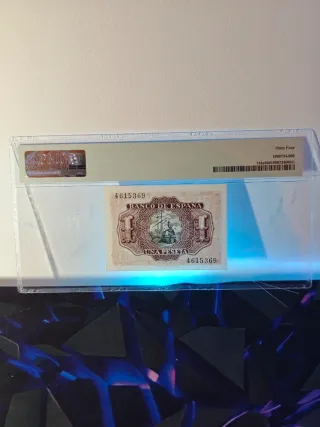 Billete Español, Certificado por NCV, plástico totalmente nuevo, certificados todos por mi, sin rayadas. La descripción del Billete y su calificación aparece en la parte superior de cada billete. ( Primera foto,Certificación ) Terminación del número de serie, 69. Toda la colección de billetes certificados tienen la misma terminación, tanto numeraciones sin serie, con serie, y series especiales. Cualquier duda o consulta, no lo dude! Se envían más fotos si se precisan, se hacen lotes para un mismo envío. Billete de 1 Peseta de la República Española, emitido en 1937. Certificado por NCV con una calificación de 45 Choice Extremely Fi