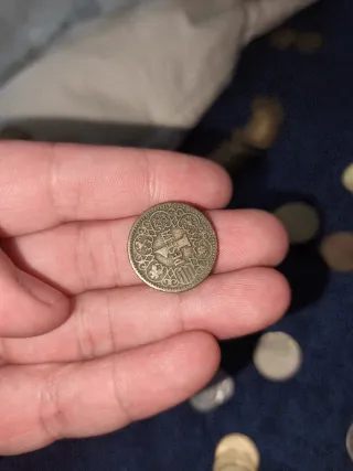 Moneda antigua de 25 pesetas. - Diseño con escudo y águilas. - Año visible en la moneda.