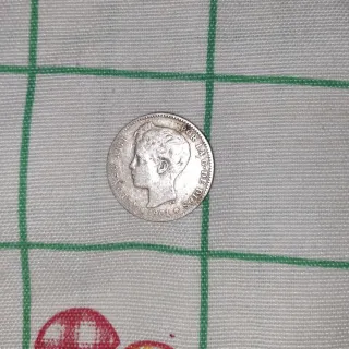 Moneda de 5 pesetas de Alfonso XIII acuñada en 1888. - Anverso: Retrato de Alfonso XIII. - Reverso: Escudo de España. - Canto: Estrellas y año. Valorada en 12000€ en perfecto estado , precio negociable