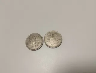 Dos monedas de 5 pesetas conmemorativas del Mundial de España 1982. - Diseño del Mundial 82. - Valor nominal de 5 pesetas.