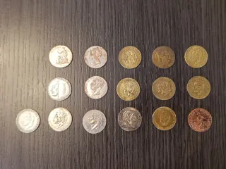 Conjunto de monedas de 5 pesetas de España. - Monedas conmemorativas. - Diseño detallado del escudo de España. - Circuladas. - Escucho ofertas y cambios!