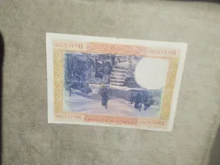 Billete de 100 pesetas del Banco de España, emitido en Madrid el 17 de noviembre de 1970. Presenta el retrato de Manuel de Falla. - Serie: 4K - Número de serie: 2885805 - Fecha de emisión: 17 de noviembre de 1970