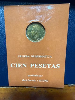 Cartera de prueba numismática de cien pesetas. - Incluye moneda de cien pesetas. - Aprobada por Real Decreto 1.417/1982.