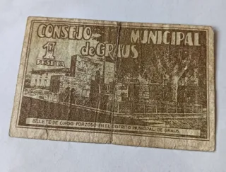 Billete 1 Peseta Concejo Municipal Graus 1937