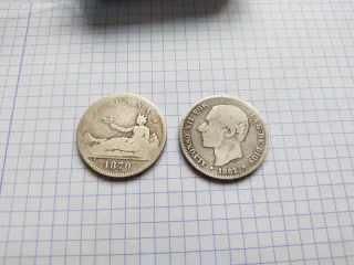 Dos monedas de plata de 2 pesetas, correspondientes al reinado de Alfonso XII y al gobierno provisional - Año: 1870 y 1882 - Peso: 19.01 gramos Se hacen descuentos por lotes