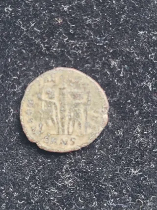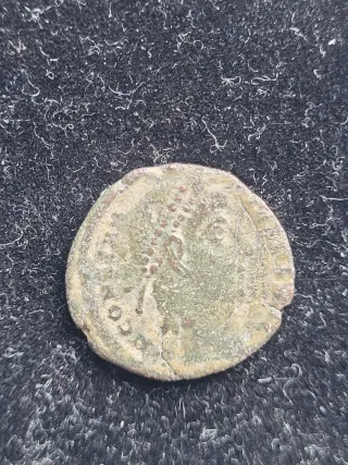 Moneda antigua de bronce, tipo nummus. - Material: Bronce. - Tipo: Nummus. - Se trata de un nummus de bronce del Imperio Romano. probablemente de Constantino ll o un emperador similar, acuñado entre los años 337-340 dC