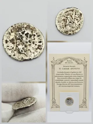 Moneda antigua de plata del Imperio Romano, correspondiente al emperador Tiberio. Una pieza histórica. - Material: Plata. - Época: Imperio Romano. - Emperador: Tiberio. Hago envíos por wallapop, mil anuncios y PayPal Moneda plata Cervantes