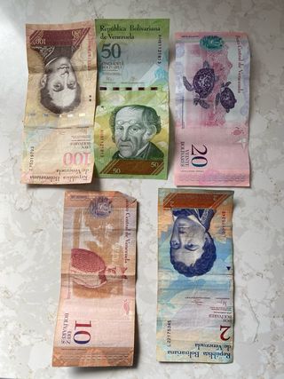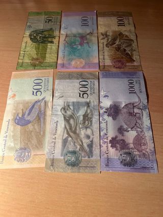 Pongo a la venta billetes de 100 bolívares venezolanos. Son varios billetes, en buen estado. - Billetes de 100 bolívares. - Moneda venezolana. - Varios billetes disponibles. billetes: 2600 bolivariana y 6 billetes de 10 boliviana y 57 monedas de 1000 bolívares
