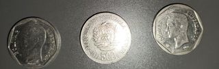 Tres monedas de 500 bolívares venezolanos. Se encuentran en buen estado. - Monedas conmemorativas. - De colección.