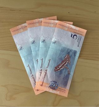 Vendo seis billetes de cinco y veinte bolívares venezolanos. Están en perfecto estado. - Cuatro billetes de 5 bolívares. - Dos billetes de 20 bolívares. - Billetes nuevos.