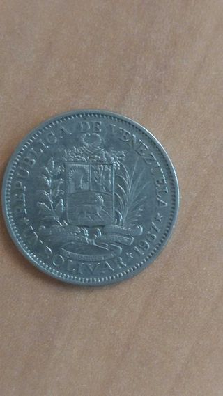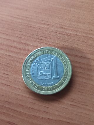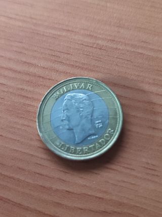 Se ofrece moneda de 1 Bolivar Venezolano. Es una moneda conmemorativa. - Muestra un diseño con el rostro de Simón Bolívar en un lado y el escudo de Venezuela en el otro. - La moneda está en buenas condiciones, aunque puede presentar señales normales de uso.