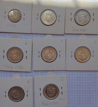 Se venden 8 monedas de plata en excelente estado de conservación. 4 de Estados Unidos y 4 de Venezuela. Las monedas estadounidenses son de John F. Kennedy, y las Venezolanas son de 1 Bolívar. Todas están en protectores plásticos transparentes (cápsulas). - 4 Monedas Kennedy (EEUU) 2 del año 1967 y 2 del año 1968. - 4 Monedas Venezolanas 2 del año 1960 y 2 de 1965. Ideales para coleccionistas tanto por su valor en plata como inversión, como por su valor numismático. Preguntar disponibilidad Antes de comprar. Precio NO negociable, si se pueden enviar de forma más económica por correo certificado con número de seguimiento desde 4€