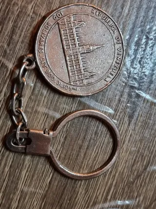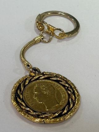 Llavero con moneda venezolana que parece de oro como llavero queda chulisimo