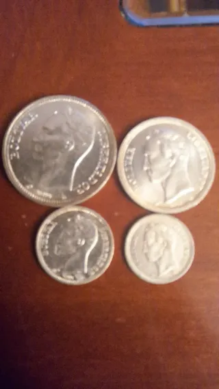 Conjunto de monedas de bolívares venezolanos. Plata 0835 solo venta en mano - Diseño con perfil de figura histórica. - Bordes con relieve. - Variedad de tamaños.2/1/0.5/0.25