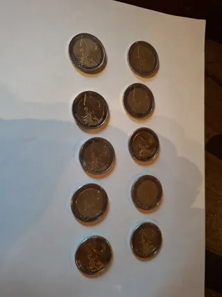Lote de diez monedas de 2 euros que han estado en circulación. - Monedas de 2 euros. - Circuladas. La movida es que se las guardaba al jefe de mi exnovia y tengo más de 200 pavos en Monedas " menos usuales", si alguien me da 20 pavillos más del valor de lo que tengo es suyo. Que me da pena gastarmelo después de haberlo estado guardando tanto tiempo