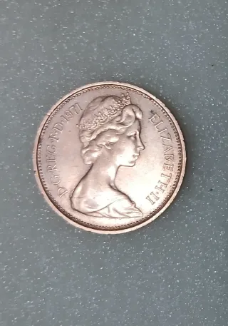 Moneda conmemorativa de 1971. - Reverso con el retrato de Isabel II. - Inscripción ELIZABETH II D. G. REG. F. D. 1971.