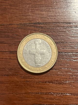 Moneda de 1 euro griega del buho de la suerte de 2002 pero acuñada en finlandia, con la marca de la s en una de sus estrellas, moneda de coleccionista