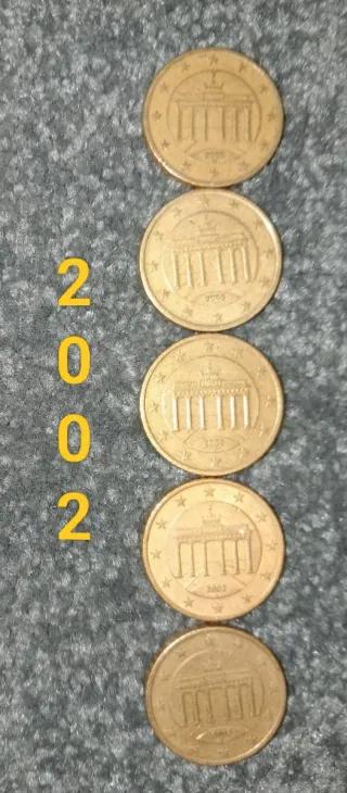Conjunto de monedas de 20 céntimos de Euro, acuñadas en Alemania. - Diseño con la Puerta de Brandeburgo. - Acabado en color dorado. Acuñadas en 2002, 2005, 2007, 2008, 2010, 2011, 2013, 2014 y 2016. Escucho ofertas razonables