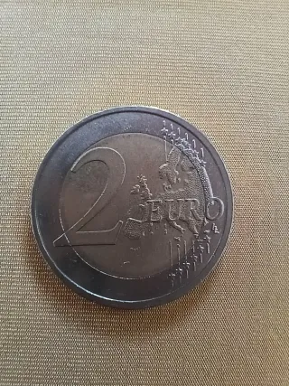 Moneda de dos euros conmemorativa del año 2007. - Presenta un error de acuñación. - Diseño con retrato y estrellas. - Borde exterior con estrellas y año.