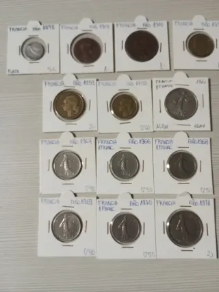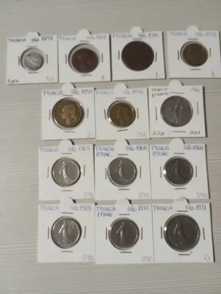 Lote de 13 monedas de Francia. - 13 Monedas de Francia 2 de ellas son de plata - Incluye monedas de diferentes años y valores.