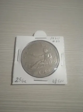 Moneda de plata de 5 pesetas del año 1870. - Material: Plata. - Año: 1870. - Denominación: 5 Pesetas.