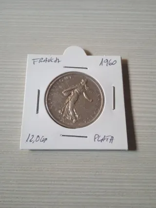 Moneda de plata de 5 francos franceses del año 1960. - Material: Plata. - Peso: 12,06 gramos. - Año: 1960.