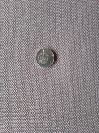 Moneda de 5 pesetas de España. - Diseño con escudo y corona. - Inscripción PTAS y número 5.