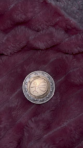 Moneda de 1 euro conmemorativa del año 2000. - Diseño con paisaje y estrellas. - Borde exterior con estrellas.