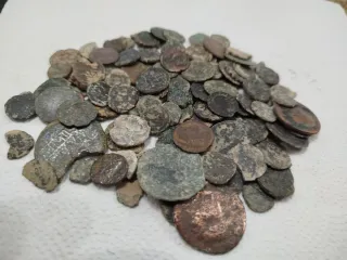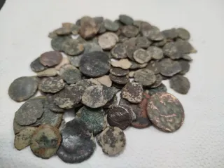 Conjunto de más de 90 monedas romanas antiguas, la.mayoria centoniales, medios centoniales y follis.Necesitan mucha limpieza.
