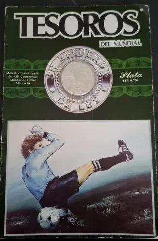 Moneda conmemorativa de plata del Mundial de Fútbol México 86. - Tesoro del Mundial - Plata Ley 0.720. Precio no negociable
