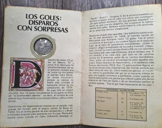 Conjunto de monedas conmemorativas del Mundial de Fútbol de España 1982. Las 4 pequeñas son de Alemania, Italia, Argentina y Brasil. La grande incluye los escudos de todos los países.